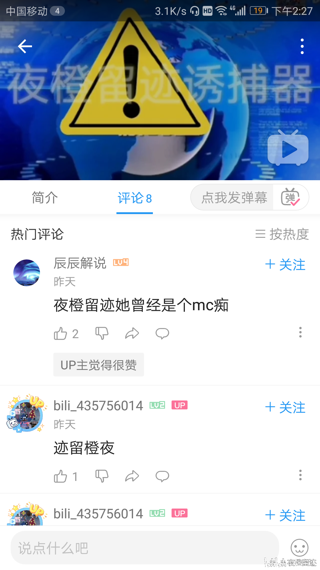 2020 年 3 月 8 日(即视频发布次日),一些低创黑子要求(或者说是胁迫)@夜橙留迹 删除《信口不开盒诱捕器》,于是 @夜橙留迹 发布了如下的动态(原链接 / 存档):